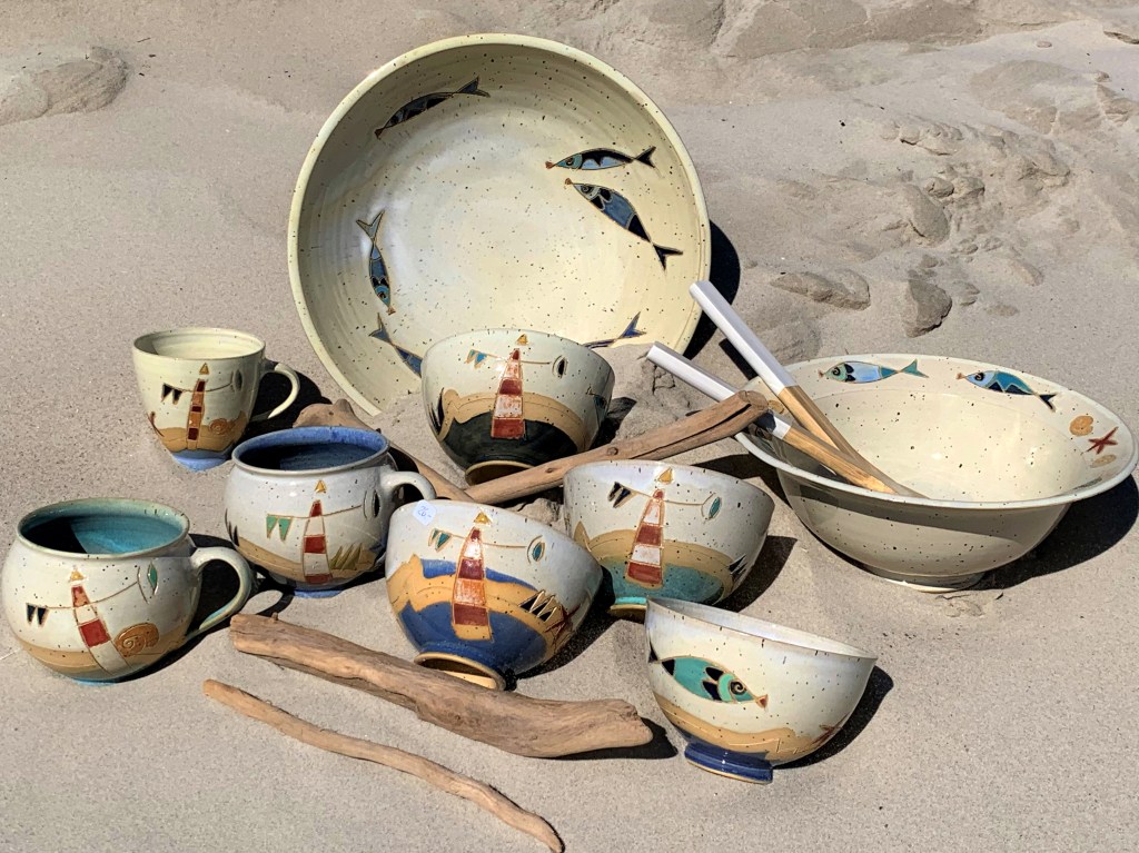 Das Beste der Nordsee auf Ihrem Geschirr. Leuchtturm, Muscheln, Fische, das Blau des Meeres. Dabei haben Sie die Wahl ob das Muster mit einer weißen Glasur oder anderen Farben kombiniert werden soll.