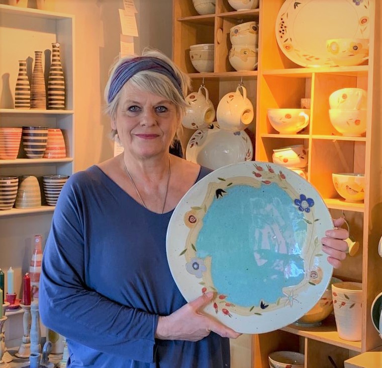 Nach interessanten „Lehrjahren“ in verschiedenen Werkstätten eröffnete sie 1986 ihre erste eigene Werkstatt. Seitdem dreht, ritzt, bemalt und brennt sie grauen Ton zu buntem Steinzeug. In Ihrer Werkstatt entstehen Gefäße für den täglichen Gebrauch sowie besondere Einzelstücke.